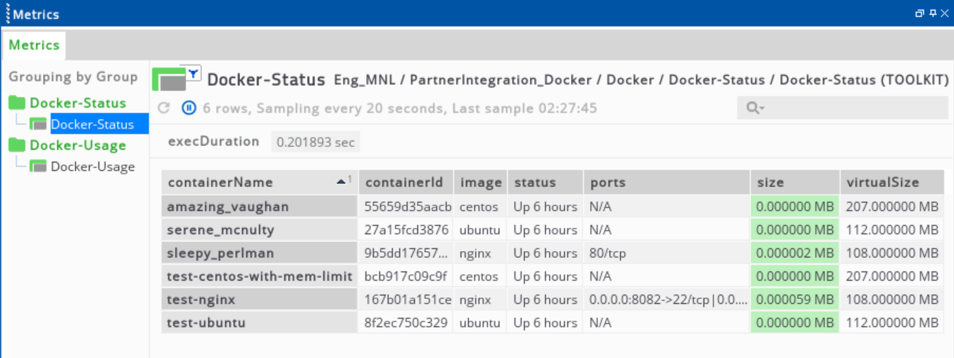 Docker monitoring is a Gateway configuration file that enables monitoring of Docker installations through a set of samplers with customised Toolkit plug-in settings.