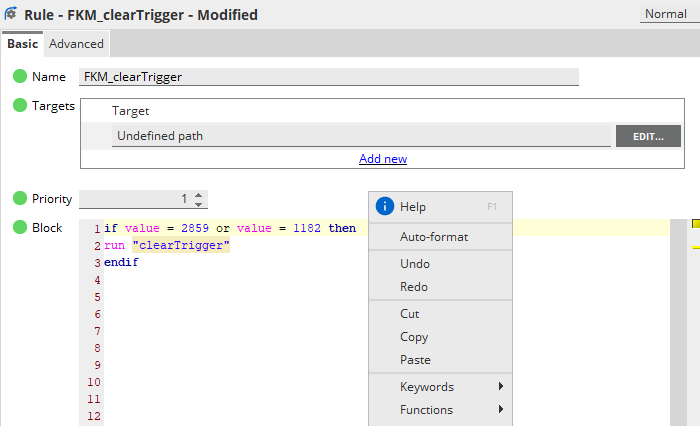 7. Select Basic on the Rules menu.
