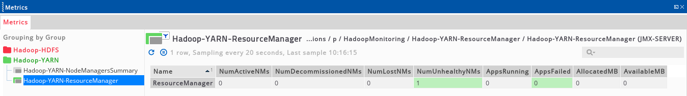 | NumUnhealthyNMs | Number of unhealthy nodemanagers. |