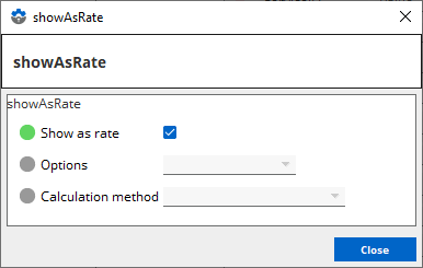 Provides the option to show the variable as a rate. When Show as rate is enabled, then you can configure the following options: