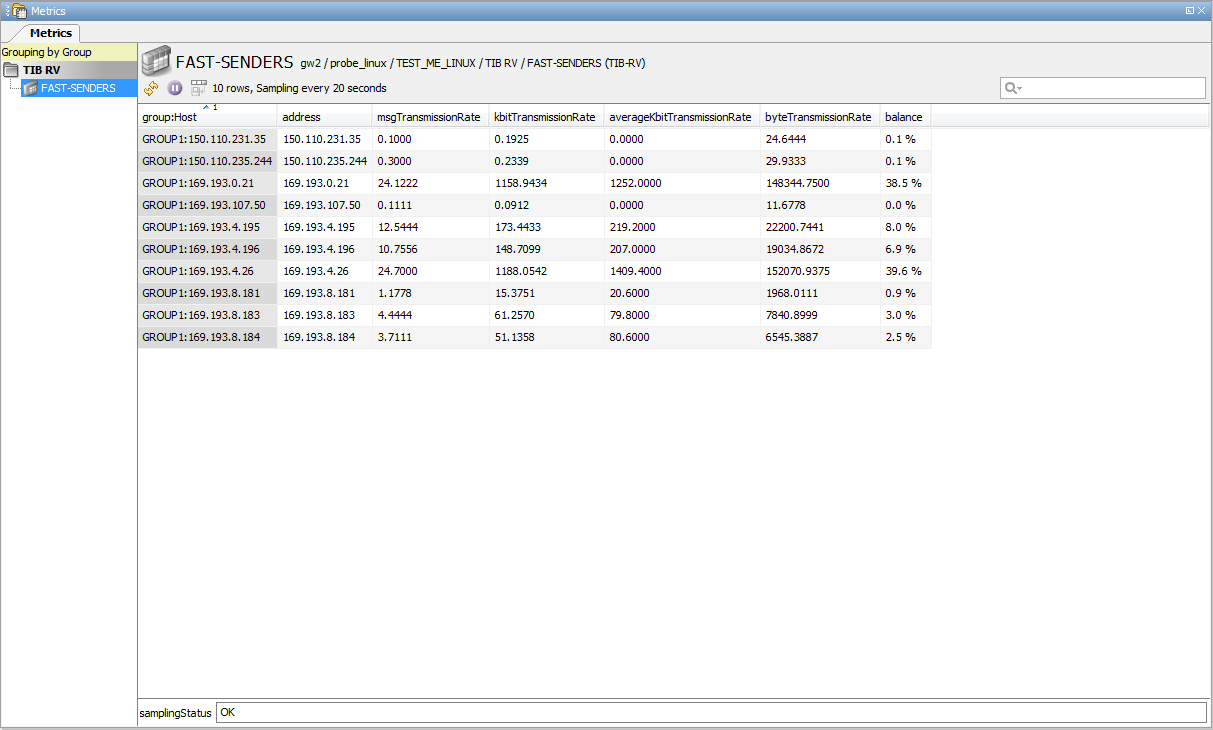 | balance | The percentage of the total message transmission rate currently attributable to the host. |