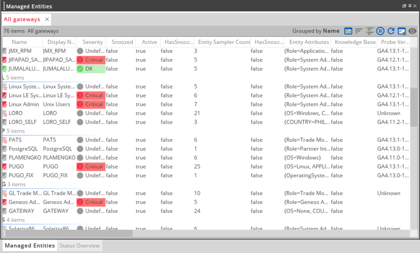 - The entity only appears in the list view if the managed entity is connected to the console (using a Dynamic path).