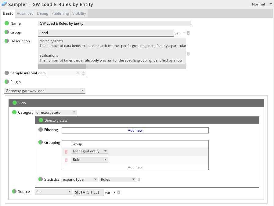 To configure a basic directory view to show statistics per managed entity, use the following sampler configuration in the GSE.