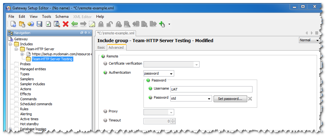 This command does what exactly what we say the Gateway Setup Editor do in Figure 44-1 - Gateway Setup Editor Generating Encrypted Password. It generates a password that can be added to a Gateway’s XML setup. The -key-file option ensures that the users specified key is used and not the Gateway’s default.