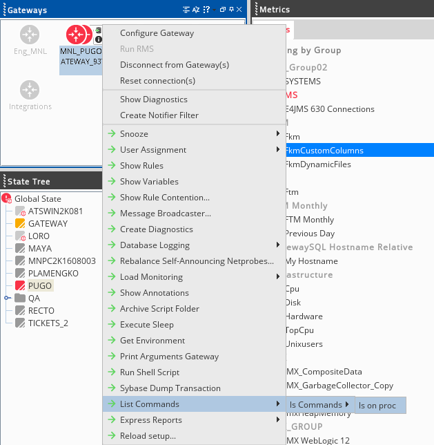 The target of a command defines the set of data-items that the command will run against and are defined using an XPath (see the XPath User Guide for more information on XPaths; in particular, the Commands - Useful Targets section provides examples of their use as command targets). This could be a particular Gateway, ManagedEntity or Netprobe or a set of these. The set of commands that are available on a given data-item are viewable from the right click menu’s on that DataItem in Active Console. Note: Â Beginning Geneos 5.5.x, the Managed Entity display name is used in the user readable paths throughout the Gateway Setup Editor, except when the GSE is opened as a standalone application. This only applies if you open the GSE within the Active Console.