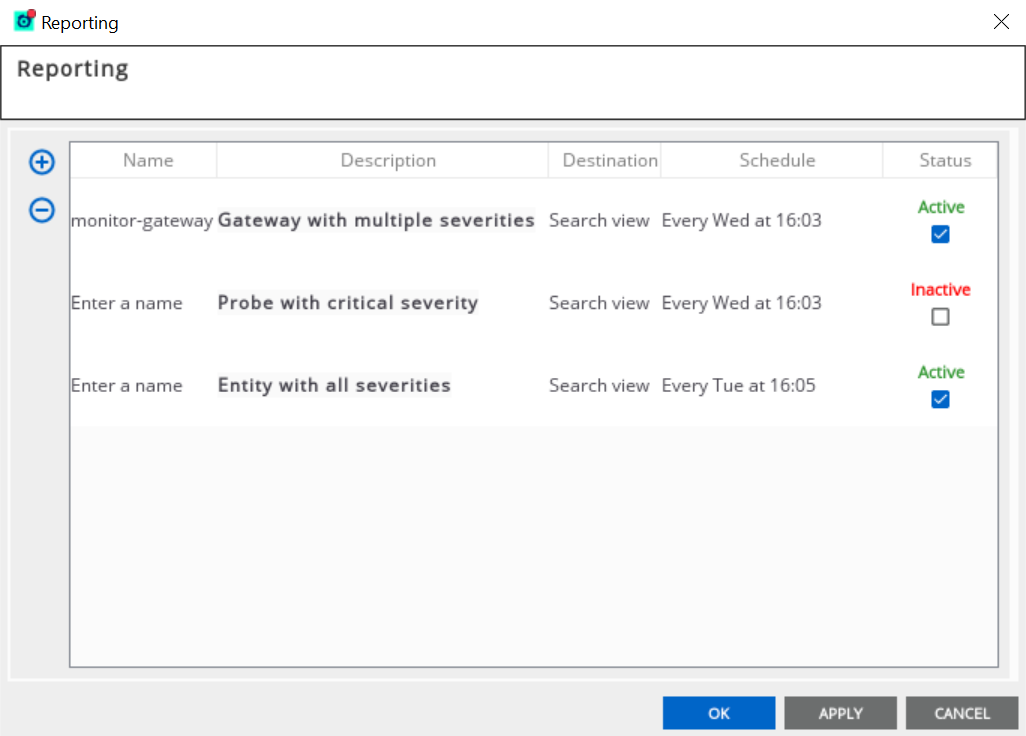 - Double-click the Schedule to set the reports schedule. Alternatively, you can right-click each row and select Edit Selected Report.